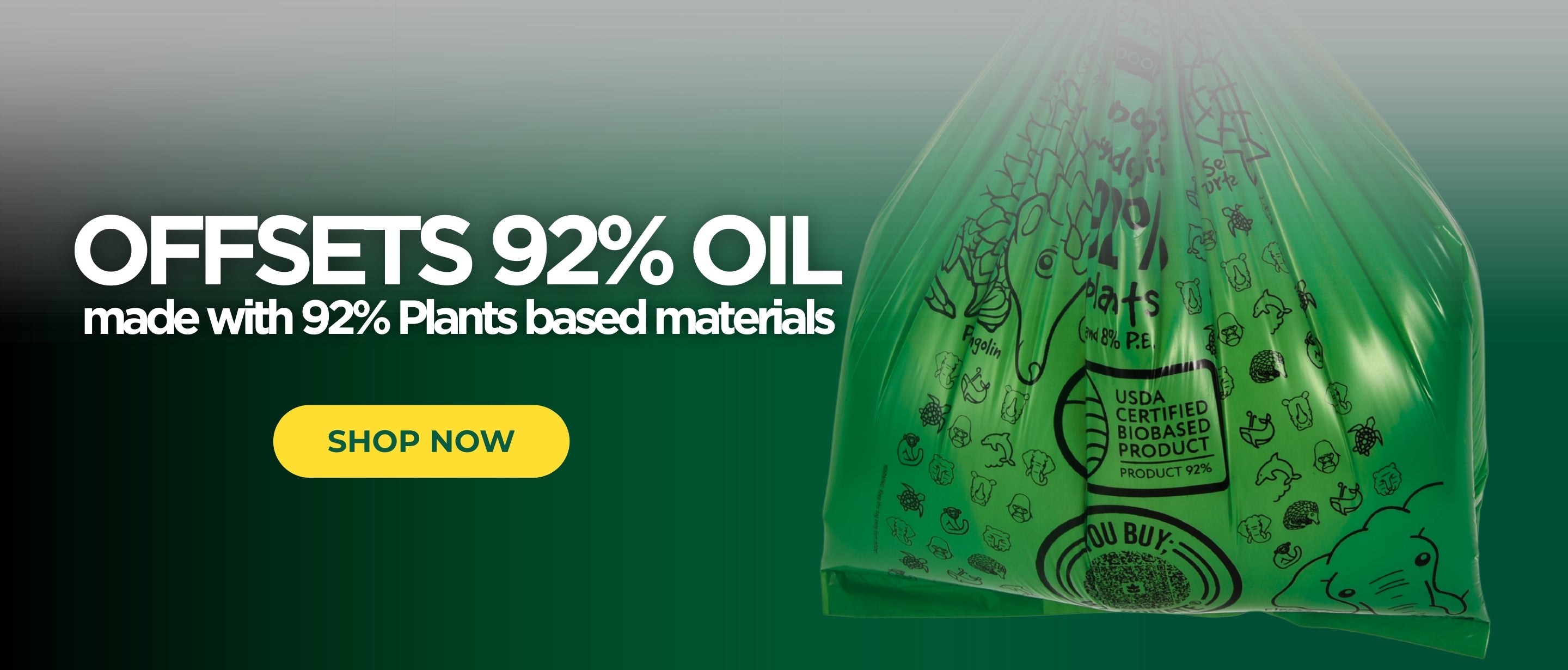 92% plant based bags: Made from 92% Plant Based and 8% Polyethylene Materials
